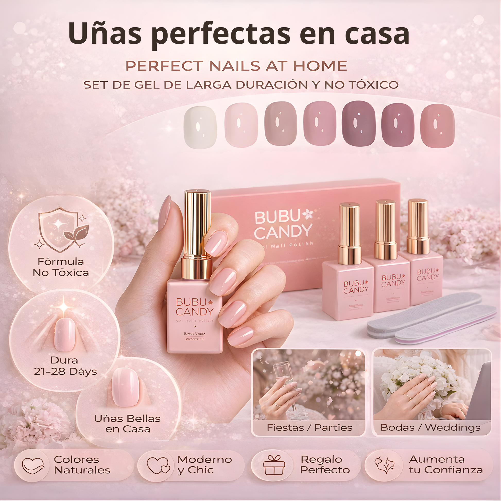 Juego de 6 esmaltes de uñas en gel minimalistas BUBU CANDY