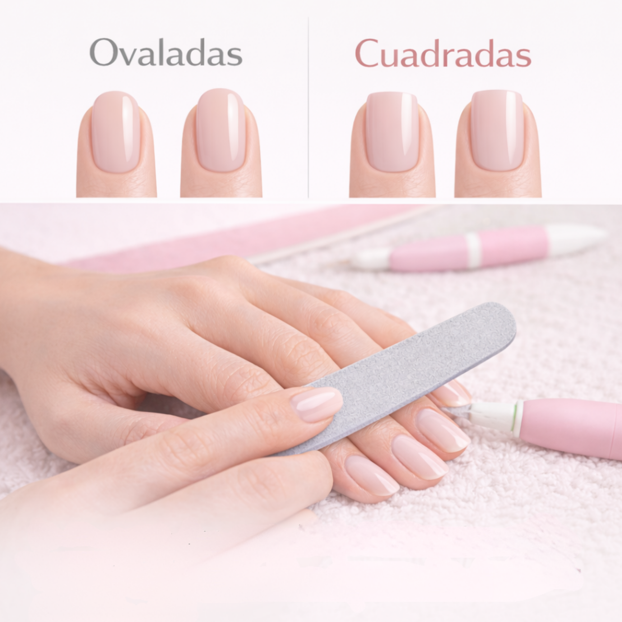 Da forma a tus uñas limandolas a tu gusto, ovaladas o cuadradas, empuja las cuticulas suavemente.